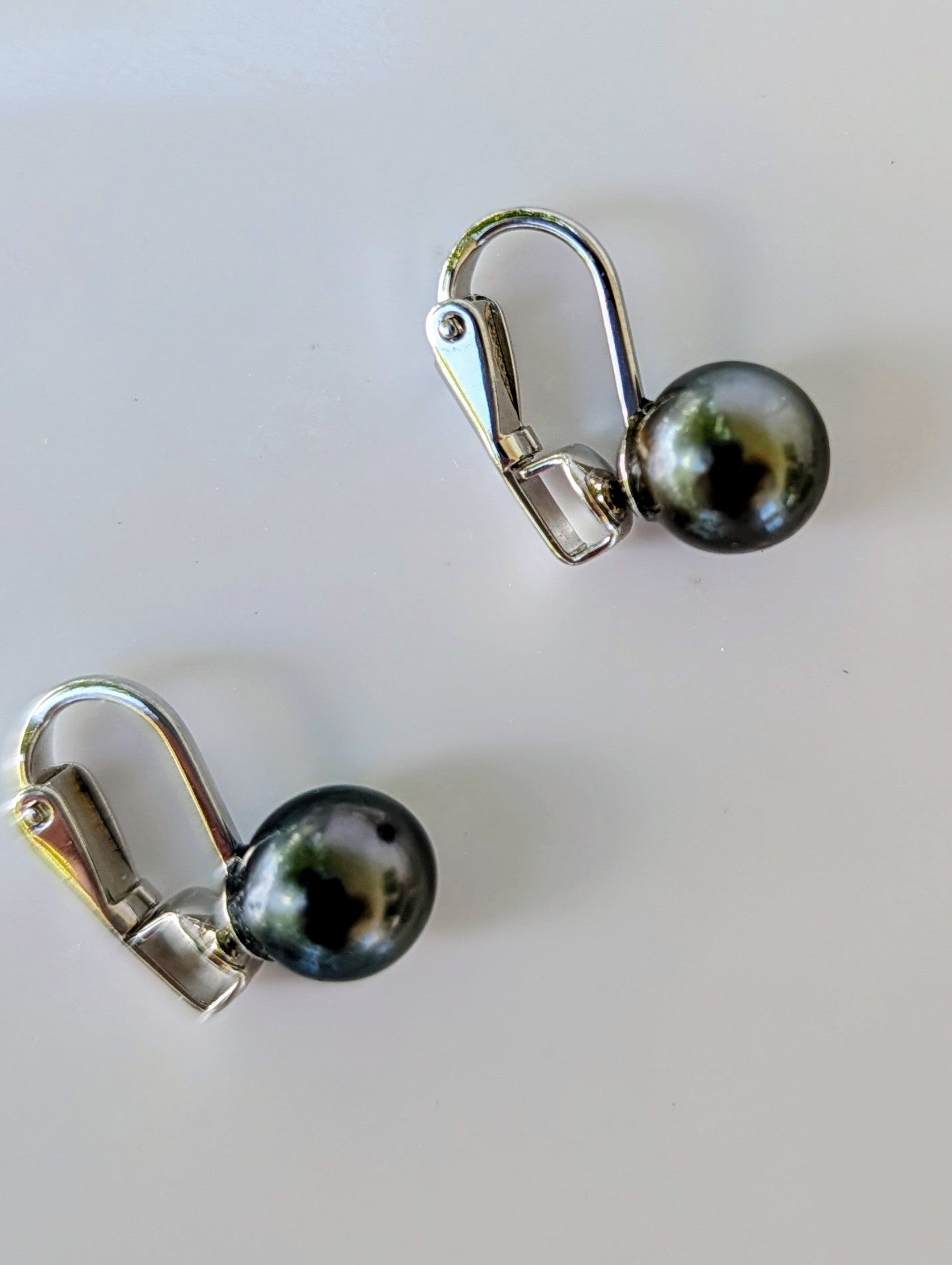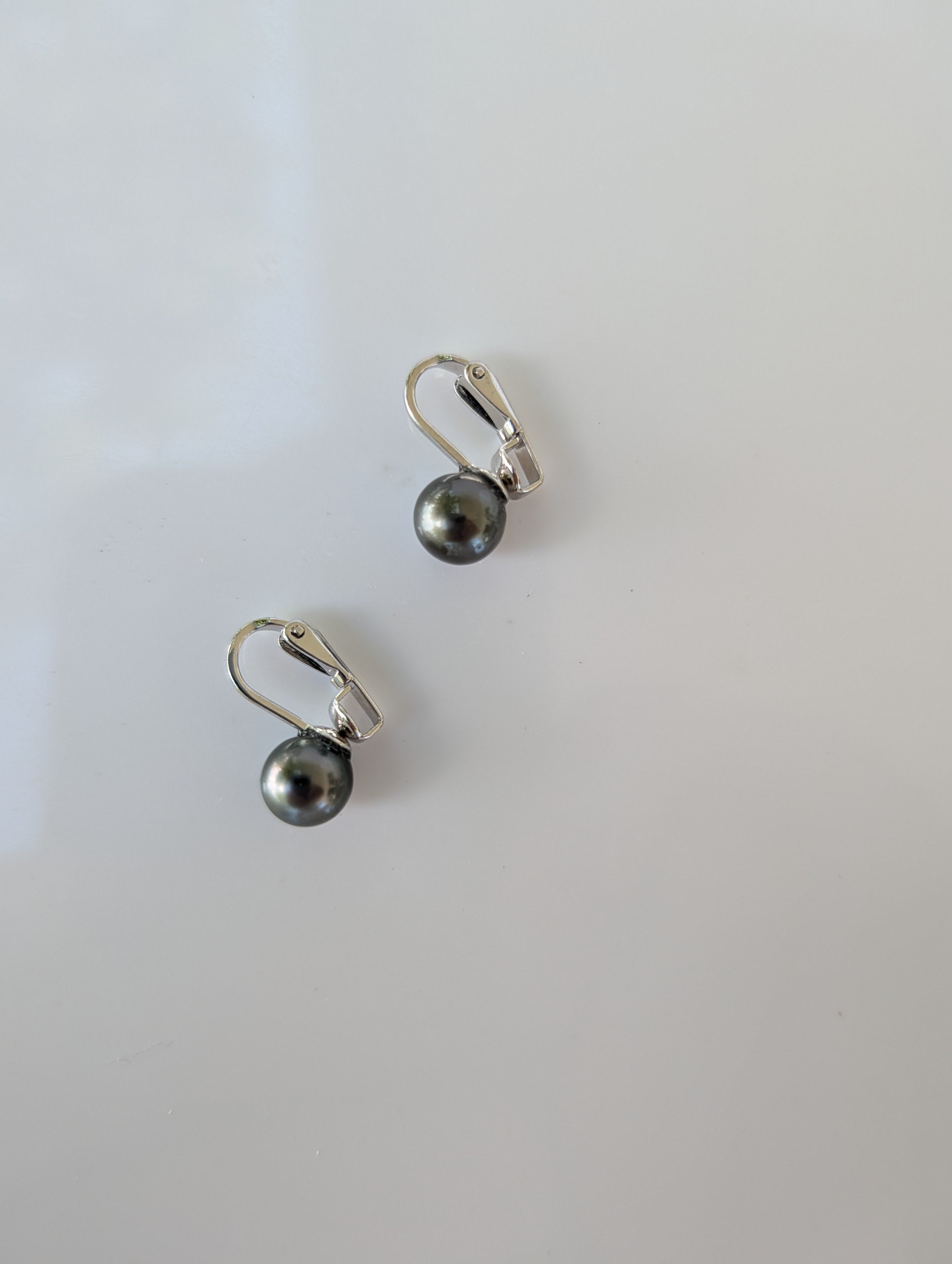 Boucles d'oreilles avec perles noires de culture de Tahiti montée sur fermoirs "clips" en argent rhodié.