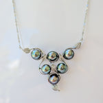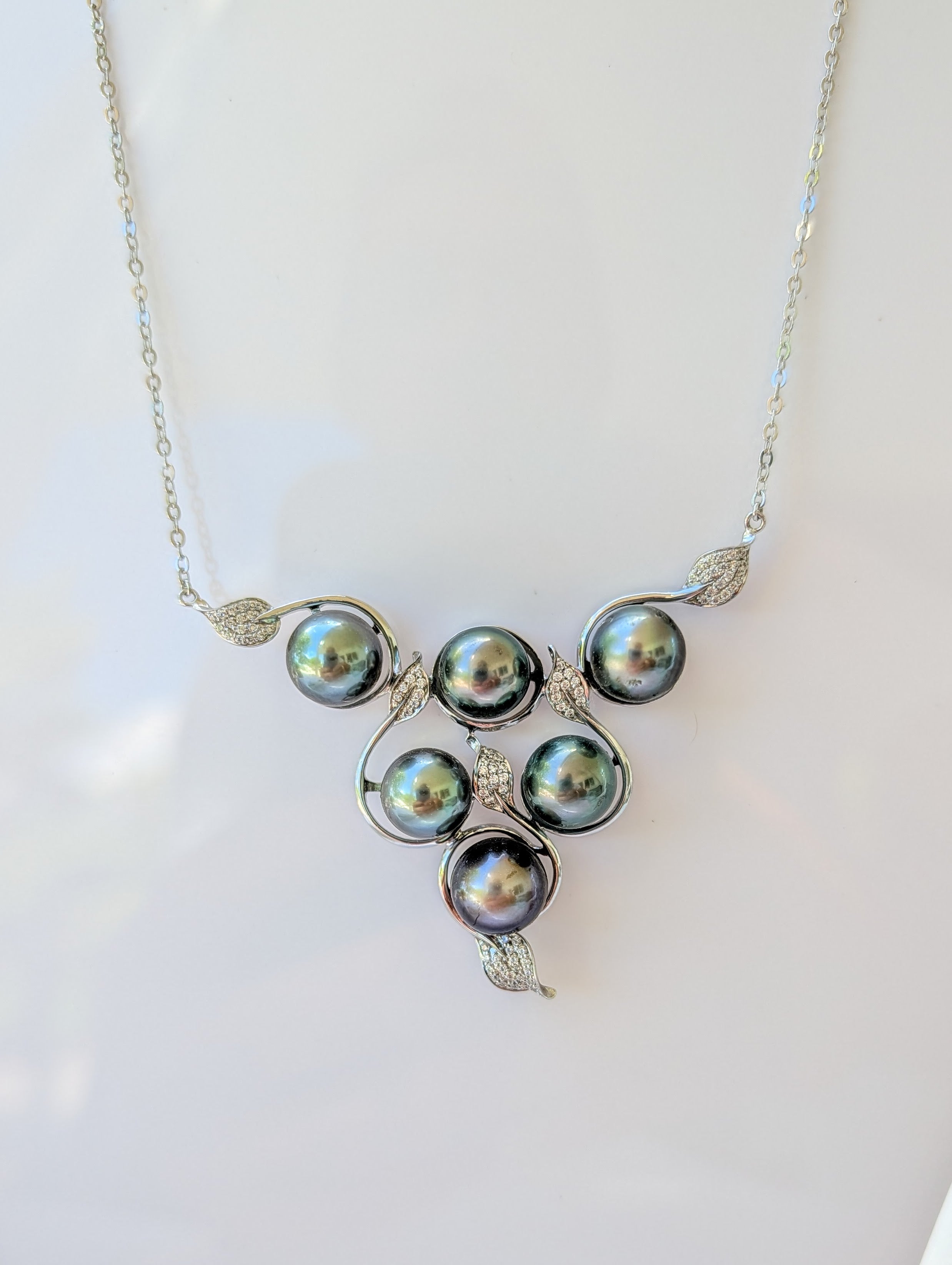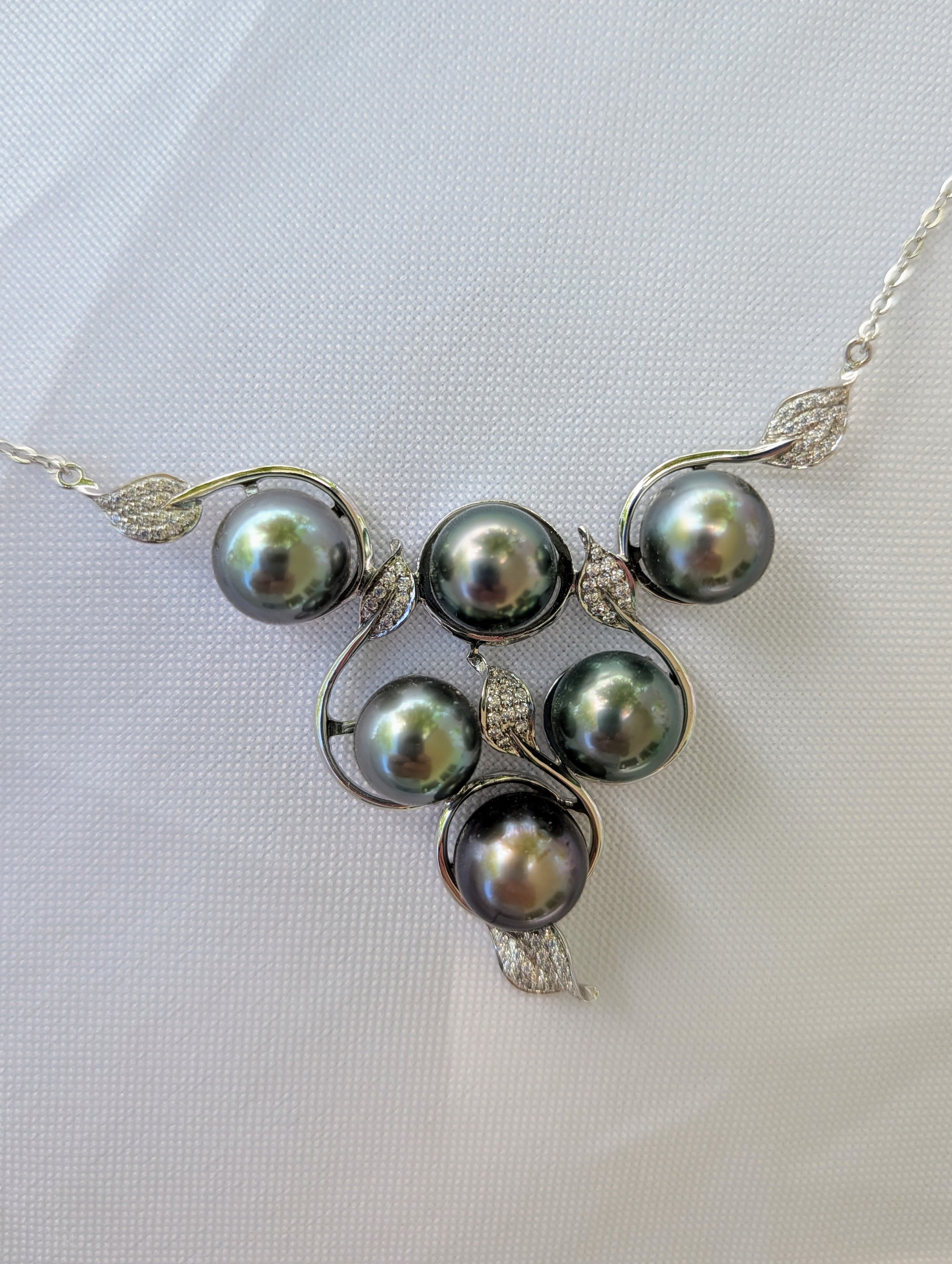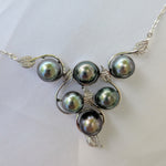 Collier en argent rhodié en triangle avec 6 belles perles de culture de Tahiti