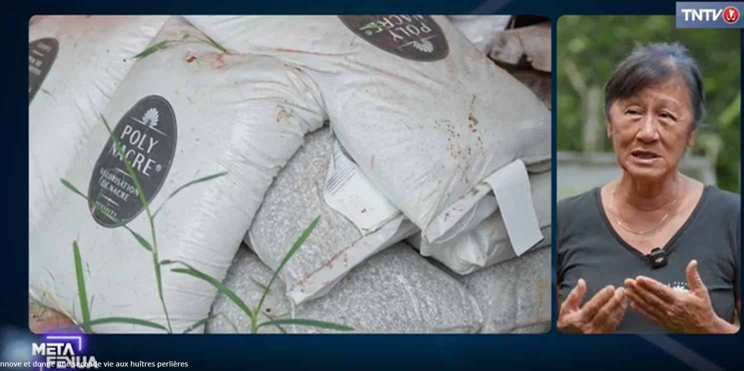 Dans un souci d'économie circulaire et de développement durable, la société Kotuku Fakarava, marque POLYNACRE, produit de la poudre de nacre de granulométries différentes à partir de ces reliquats considérés comme des déchets par les fermes perlicoles. Inférieure à 2 mm et supérieure à 6 mm, celle-ci est idéale en amendement calcique pour améliorer le Ph des sols et les rendre moins acides, donc plus productifs.