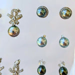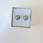 Boucles d'oreilles en "puces" avec fermoirs en argent rhodiés avec perles de couleur argent entourée d'une collerette élégante en zirconium.