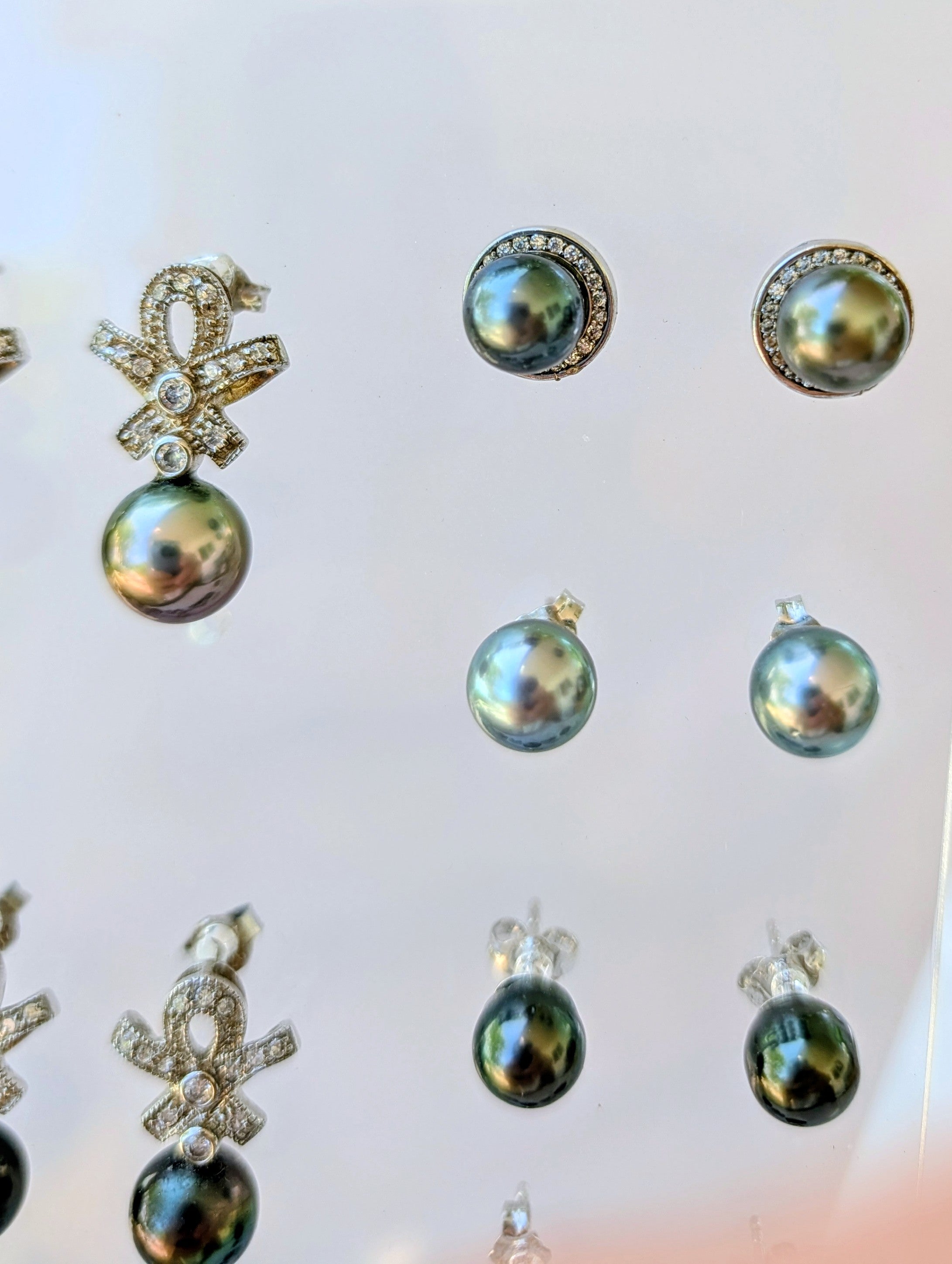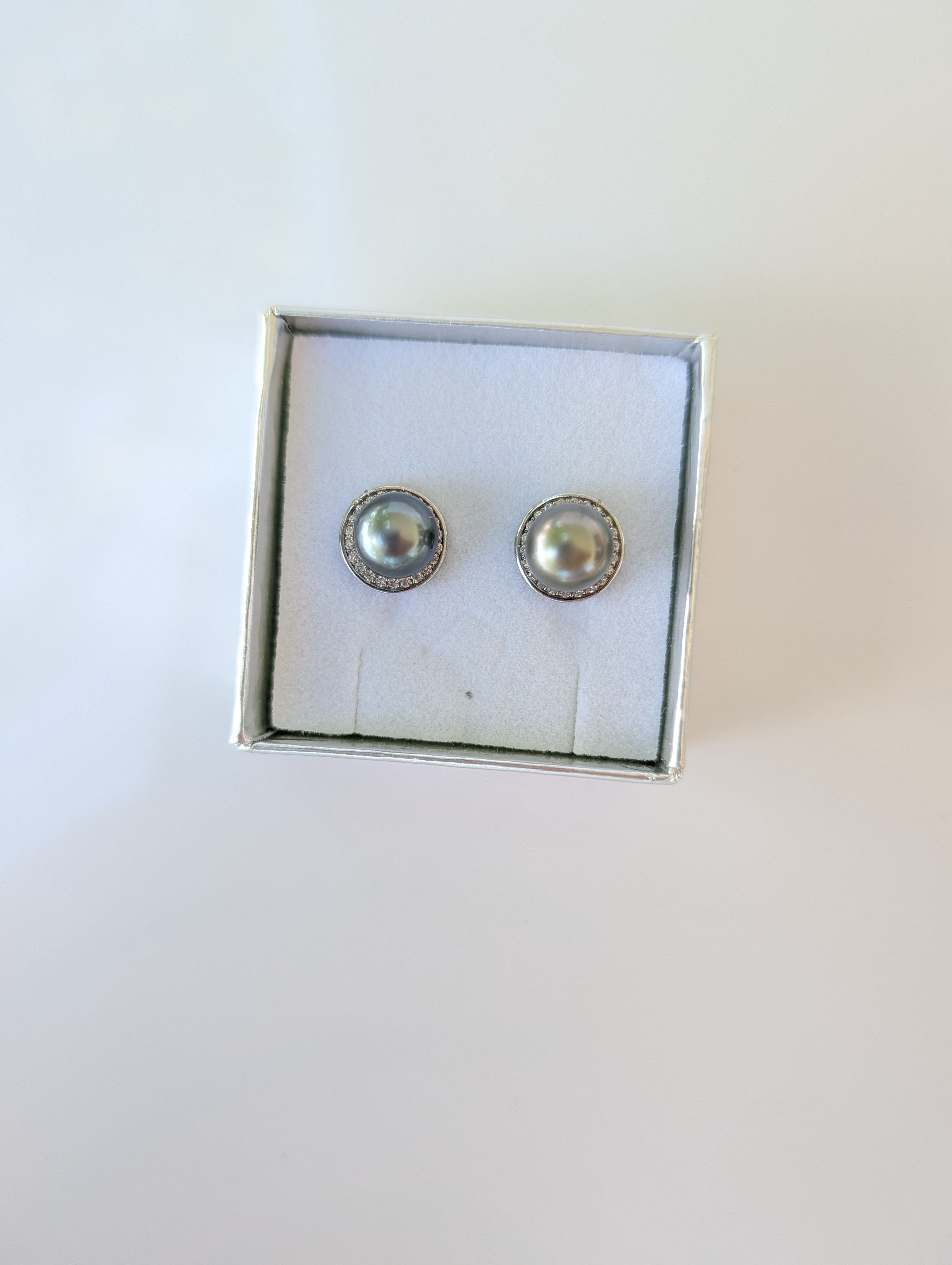 Boucles d'oreilles en perle de Tahiti avec collerette zirconium