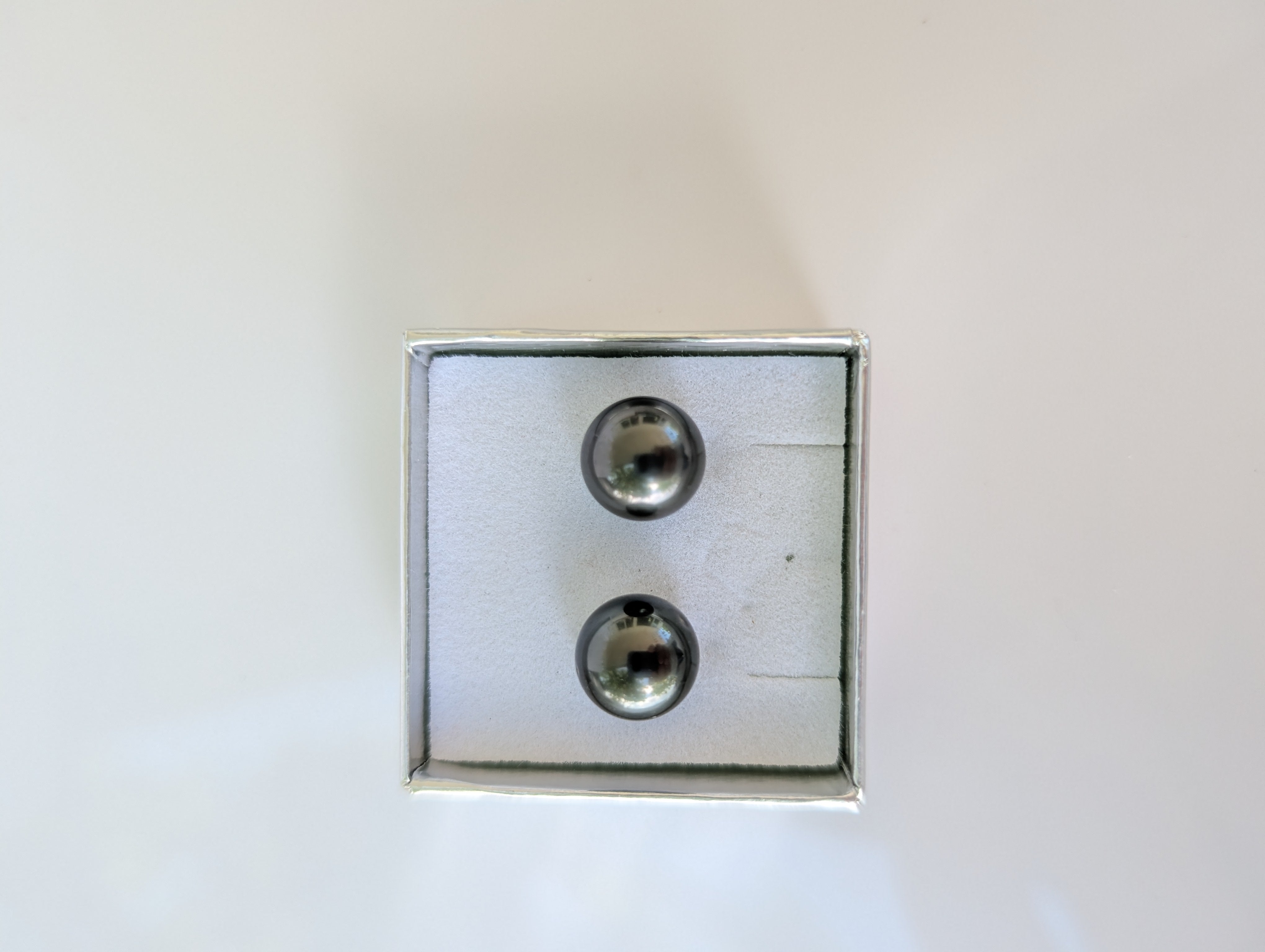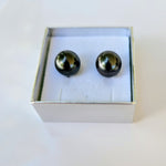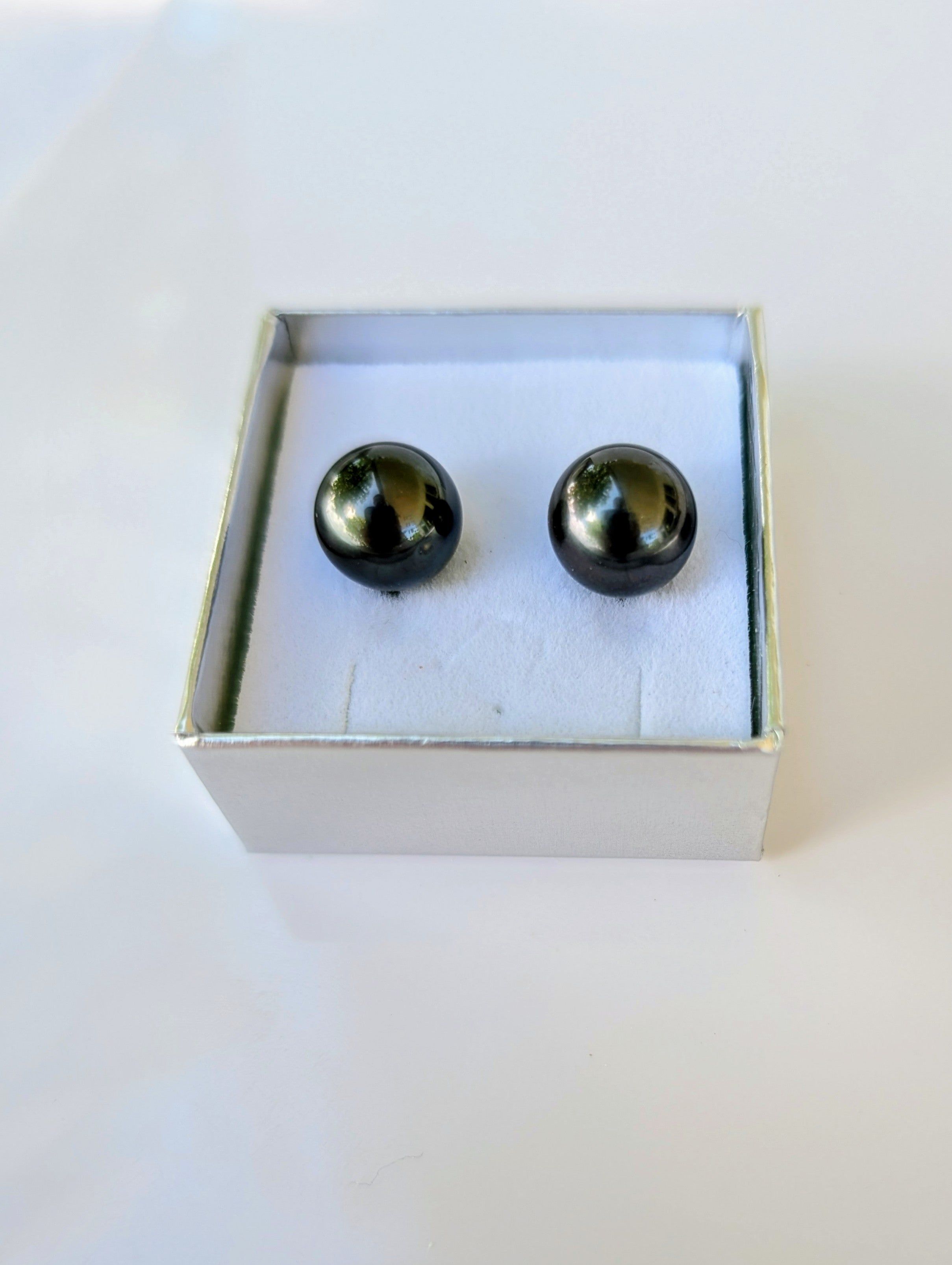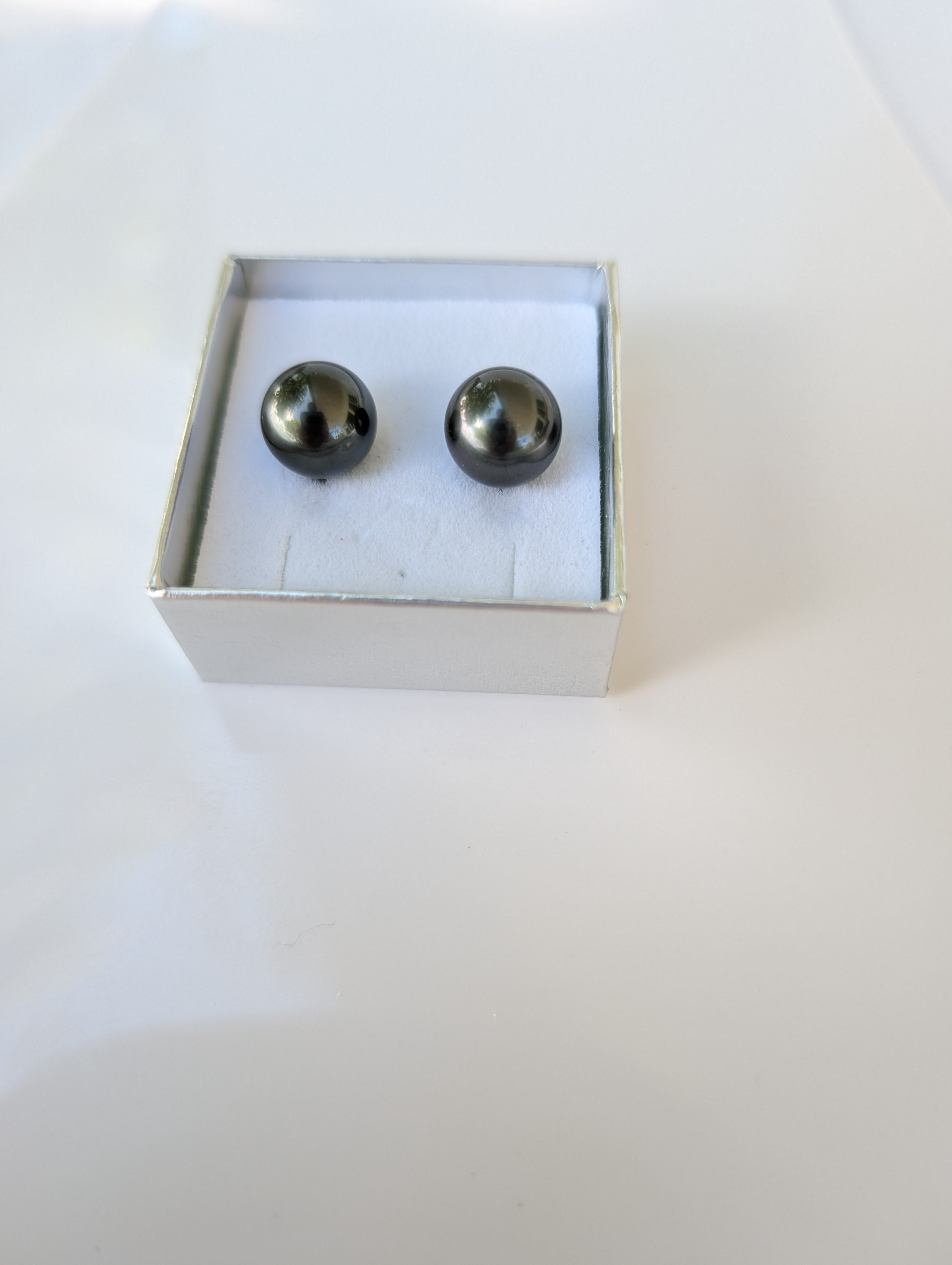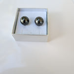 Boucles d'oreilles avec perles noires de culture de Tahiti montée sur fermoirs en argent rhodié.