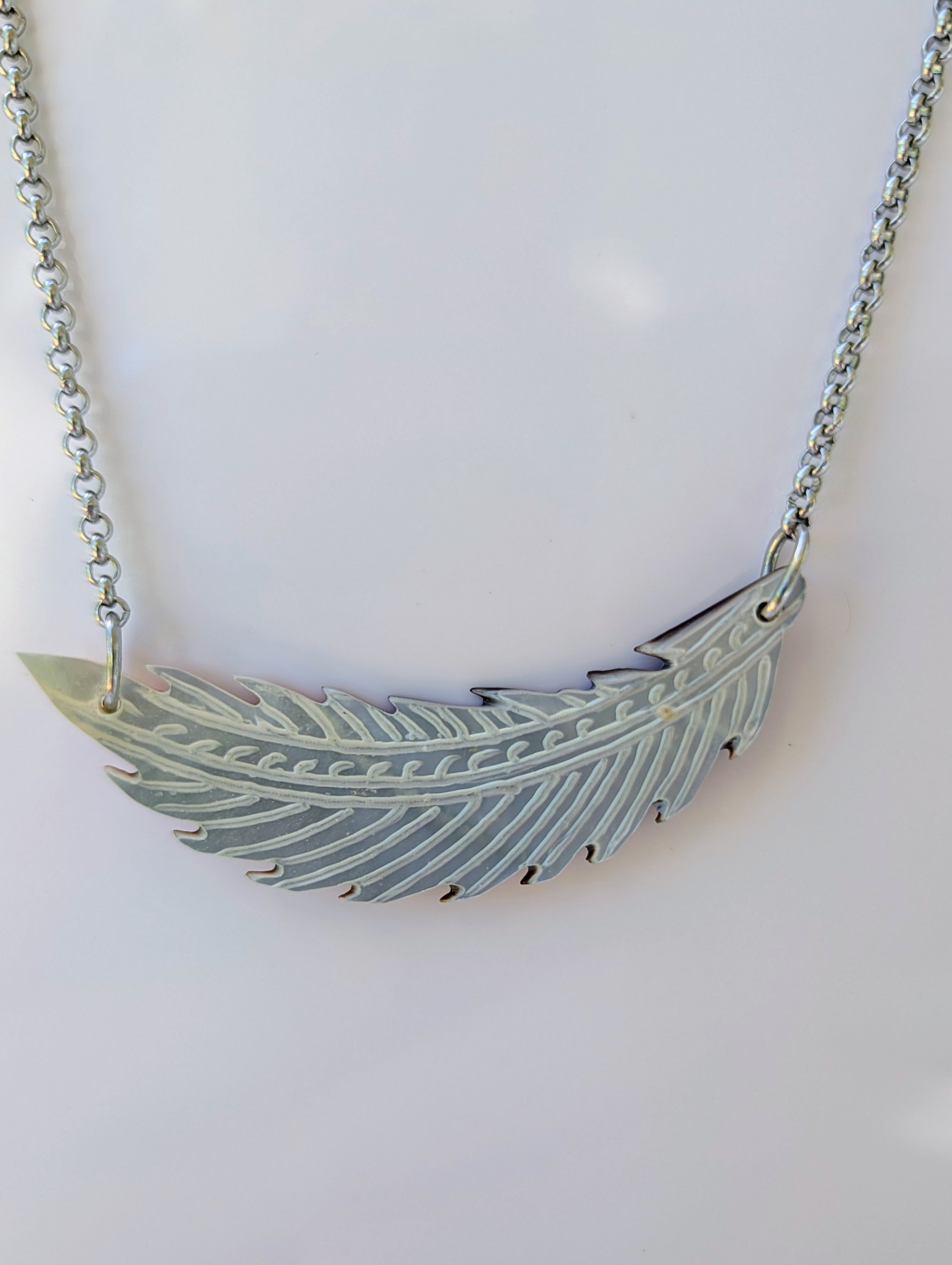 Collier de nacre gravée en forme de feuille