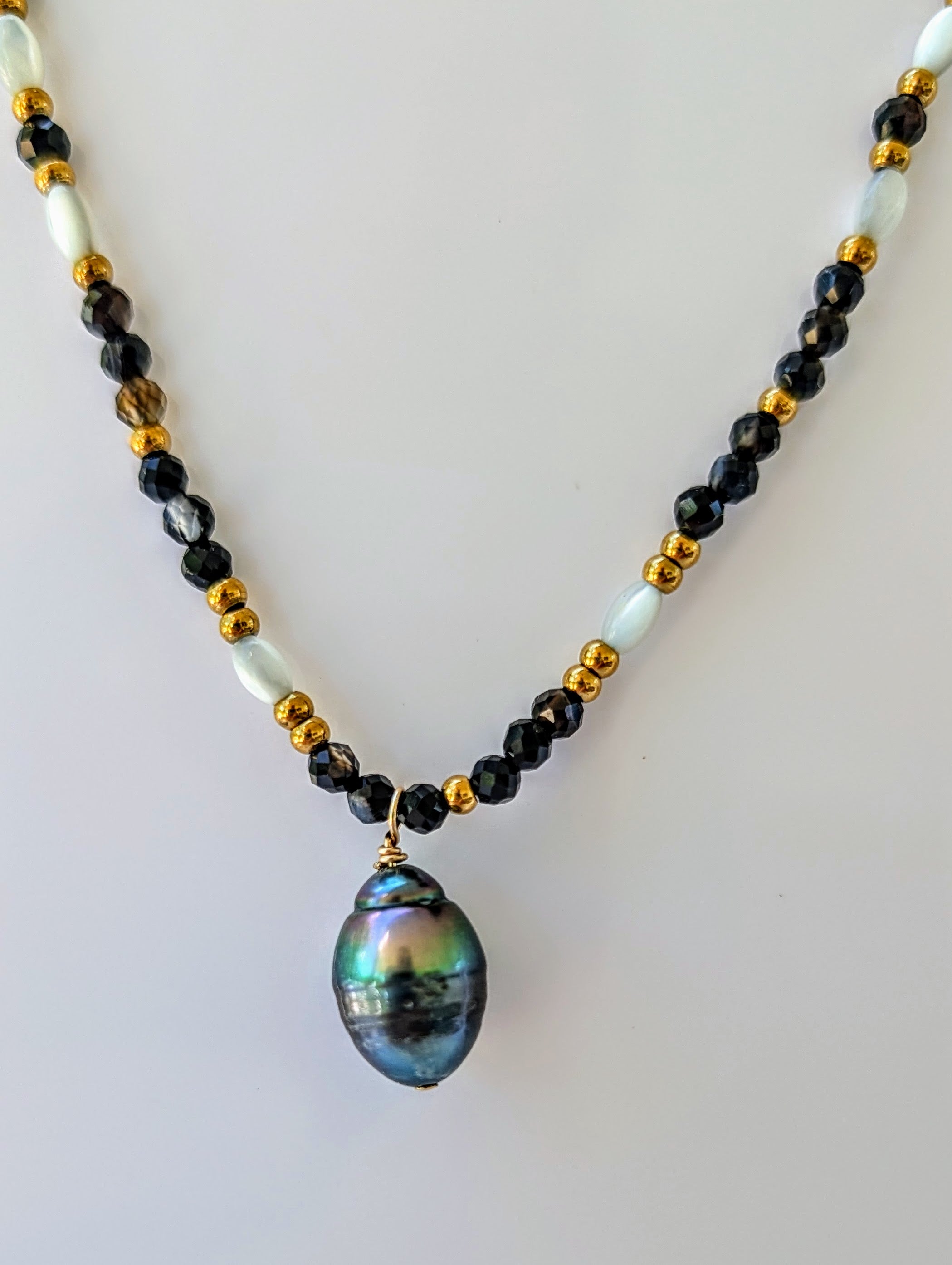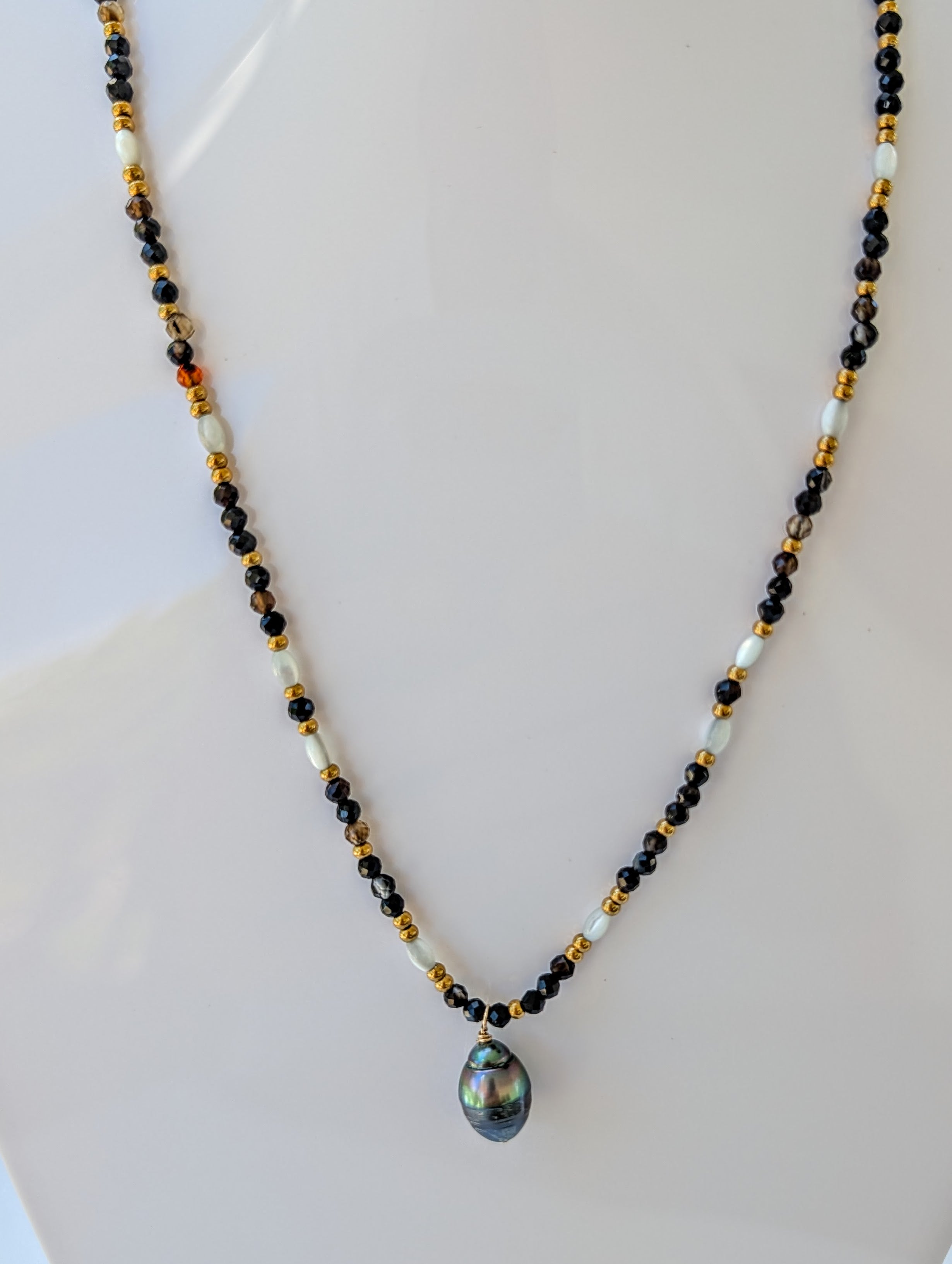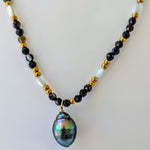 Collier noir doré et blanc avec perle Tahiti
