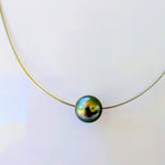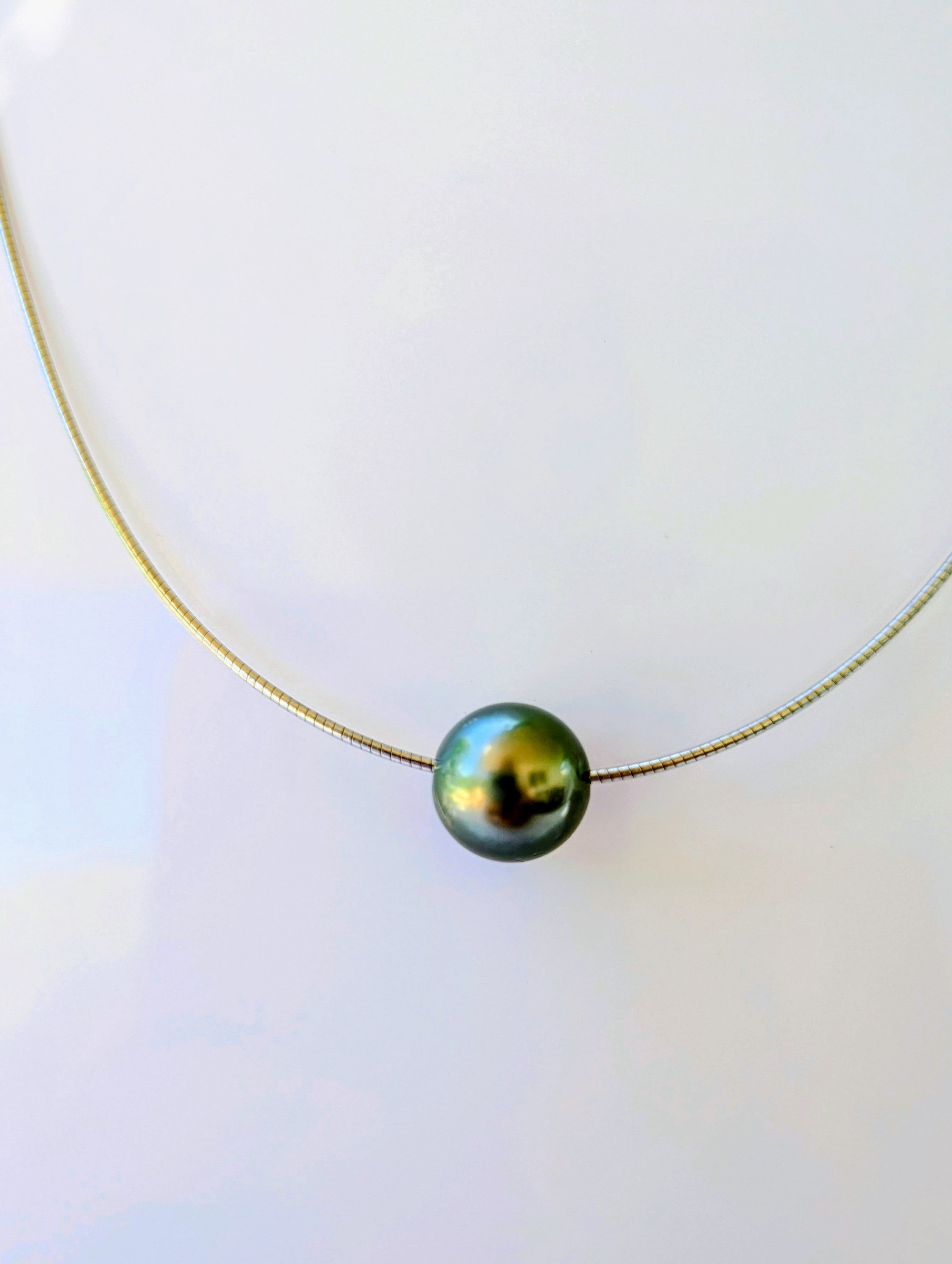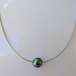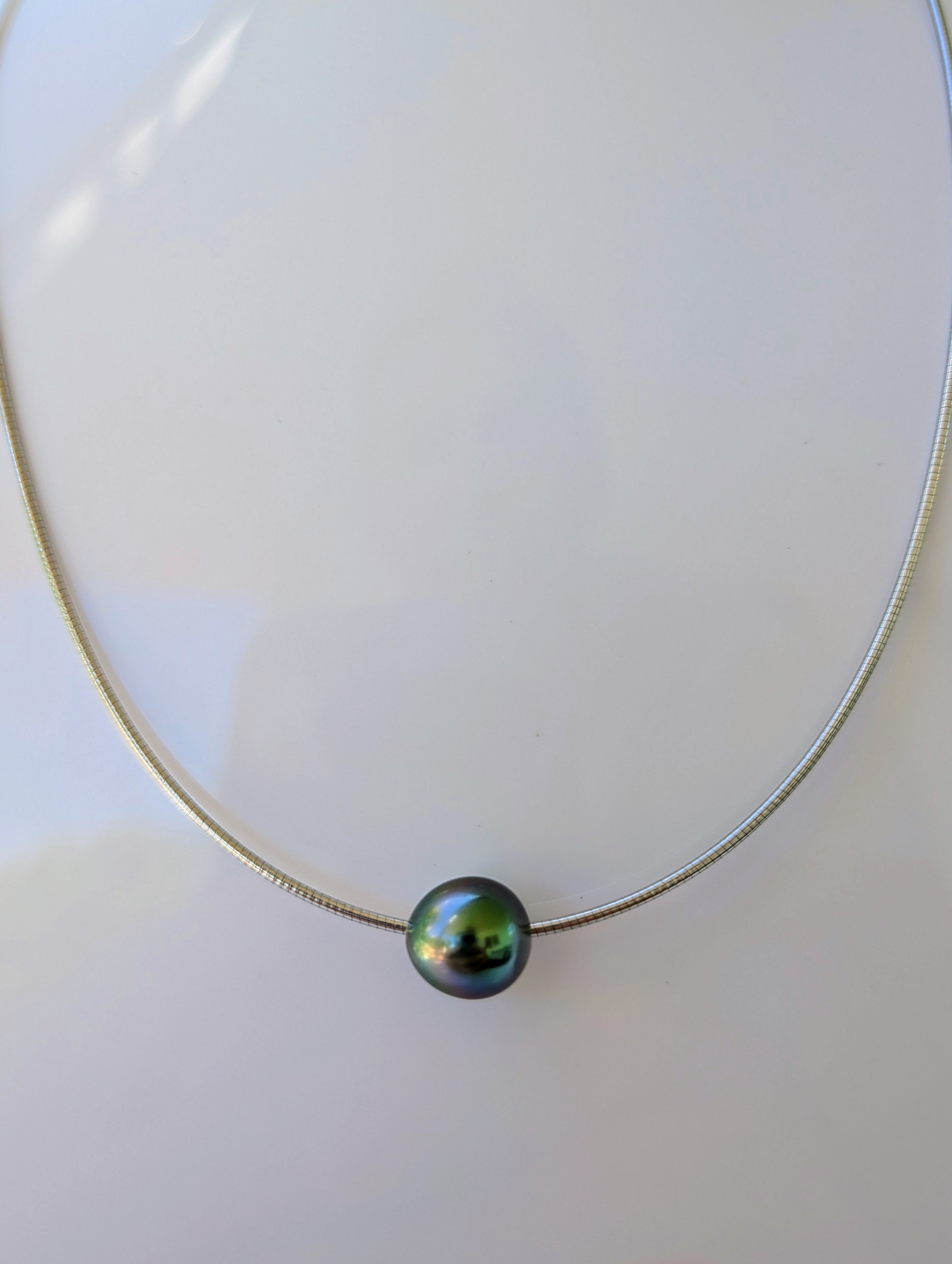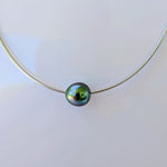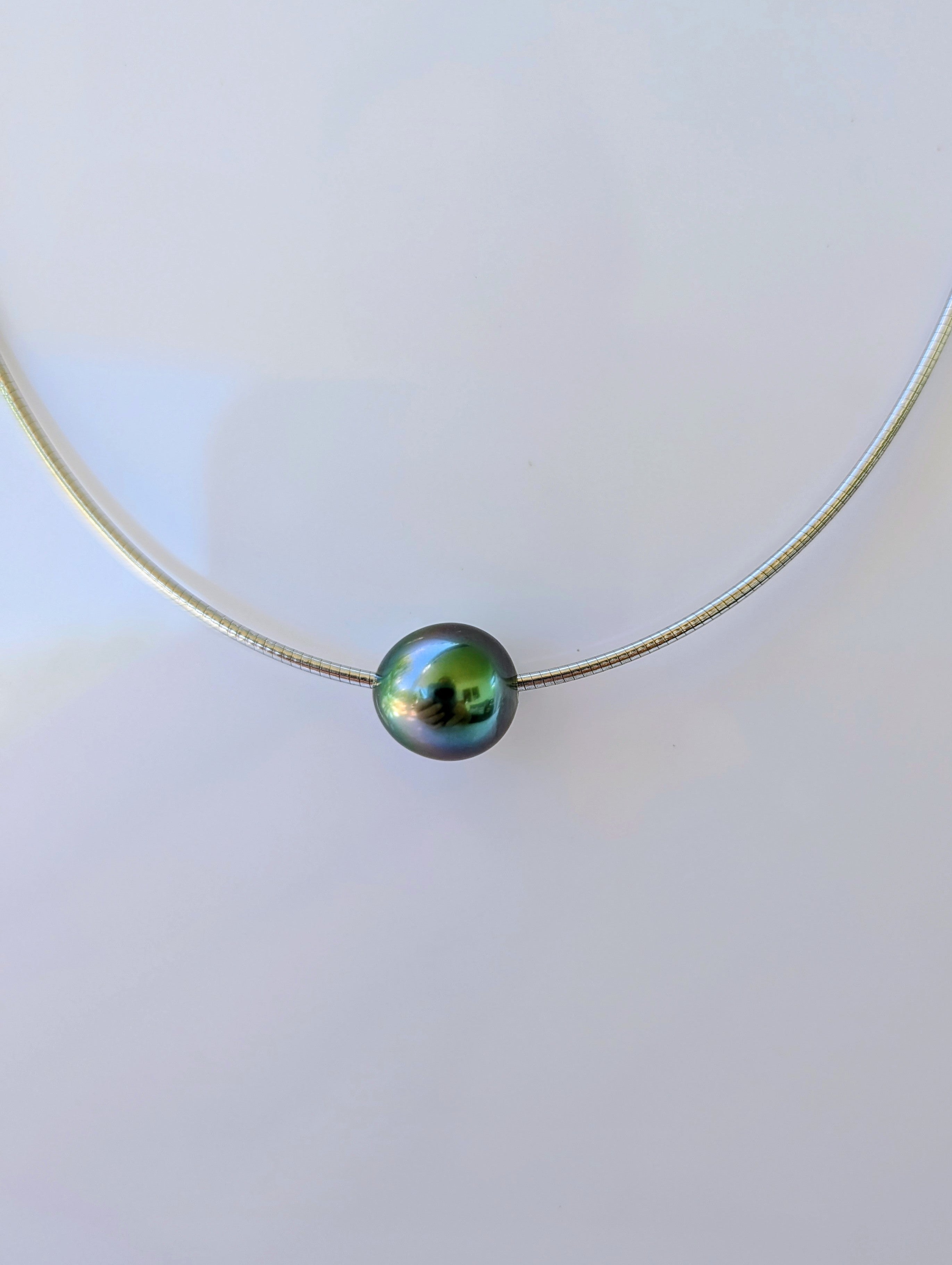 Collier en argent rhodié modèle "oméga" avec perle de culture de Tahiti de belle qualité.