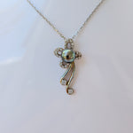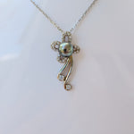 Pendentif fleur en zirconium et perle aux reflets verts