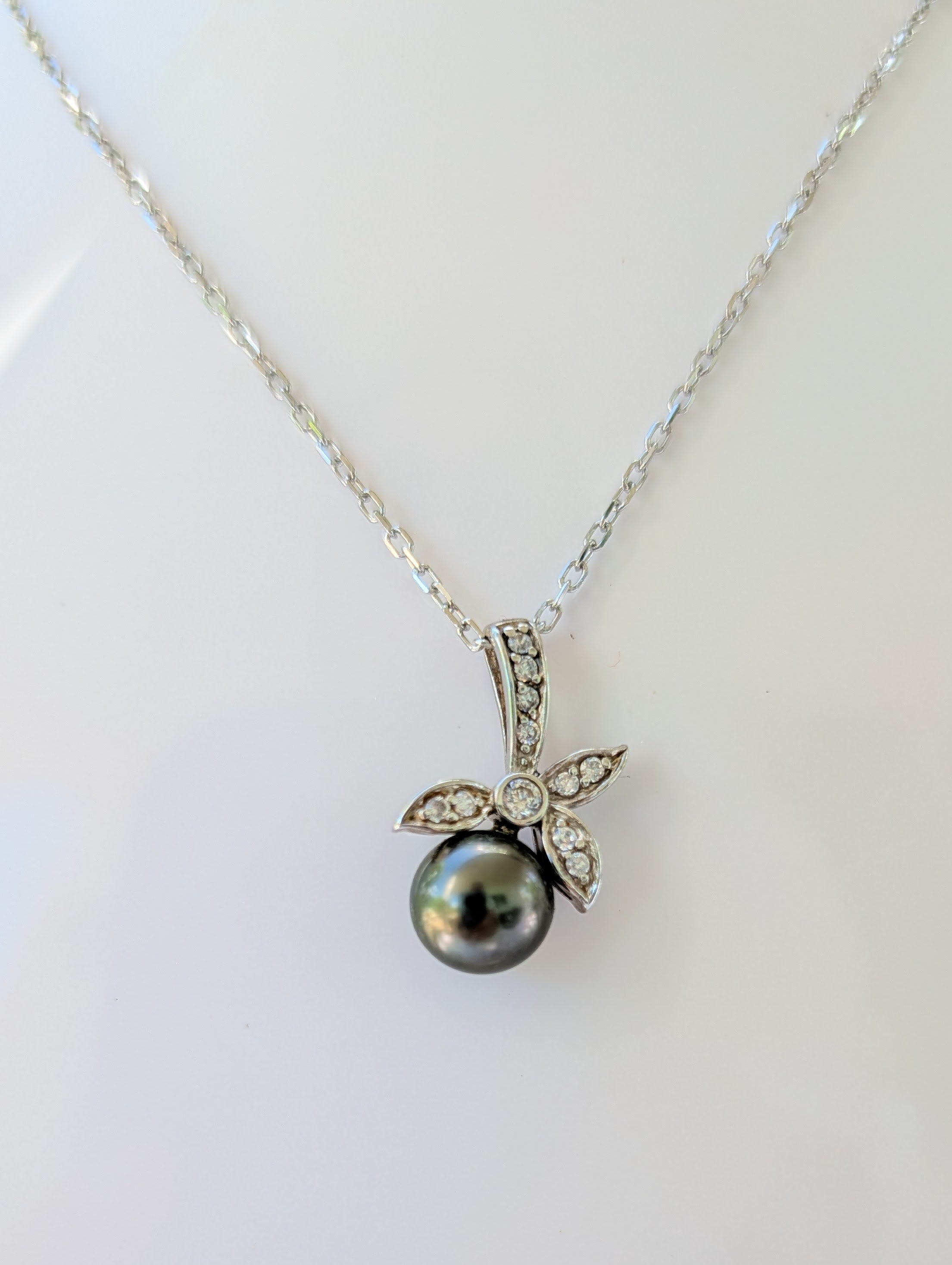 Pendentif pétales en zirconium et perle de Tahiti